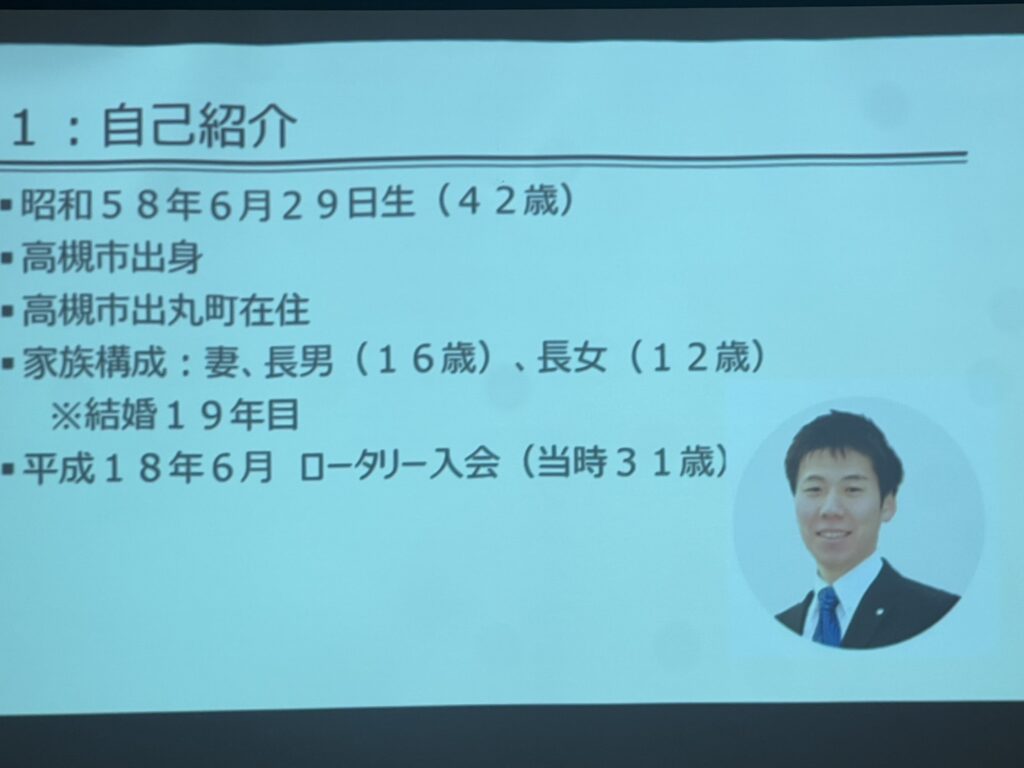 卓話では①自己紹介②司法書士業務③業界を取り巻く最近の動向について④司法書士の使命と職業奉仕についてと4項目お話しいただきました。