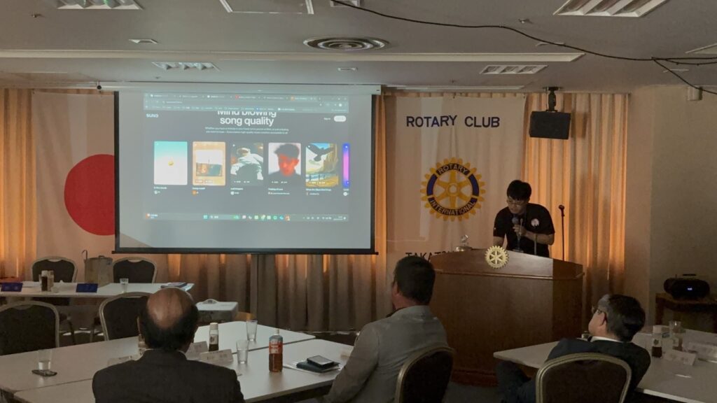 最後はAIと共存するためには利用者自身がAIリテラシーを高め、適切なガバナンス体制を整備することの重要性について述べていただき卓話を締めくくりました。