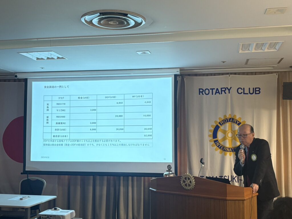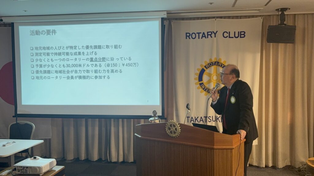 GG申請とはグローバル補助金という制度でロータリーの7つの重点分野に沿ったものであり、予算が少なくとも30,000ドル規模のものであることが要件であります。