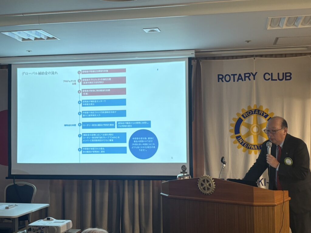 今回の卓話者は国際ロータリー第2660地区 ロータリー財団委員会に出向されている樋口会員に行っていただきました。