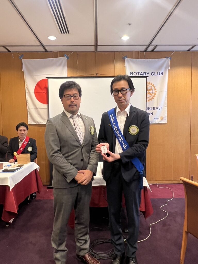 ご多忙の中皆出席1周年を達成されたことは杉若会員のロータリーへの強いコミットメントと奉仕の精神の証であると思います。